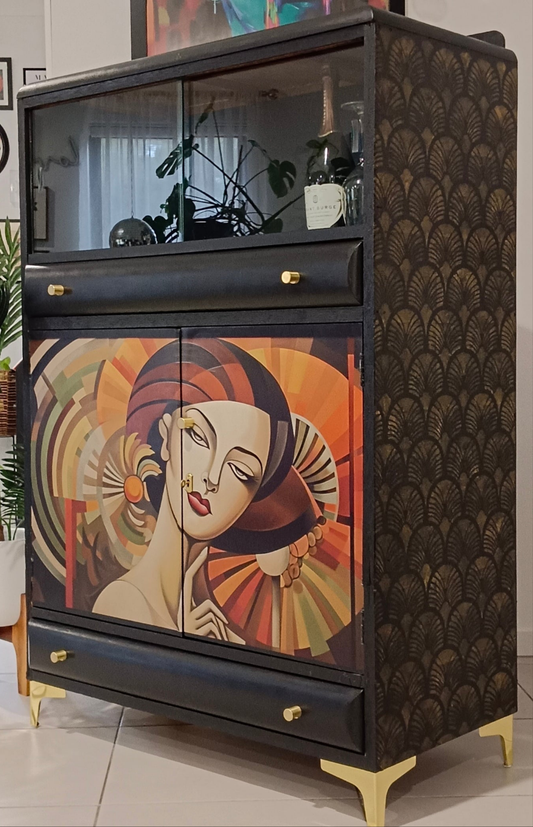 Sold outTall Vintage Art Deco Lady Cabinet