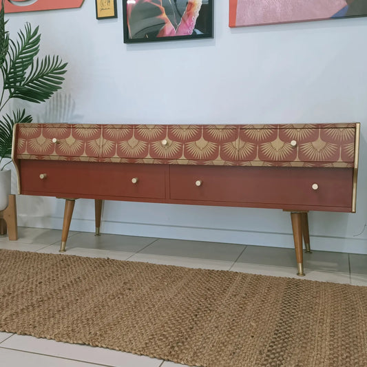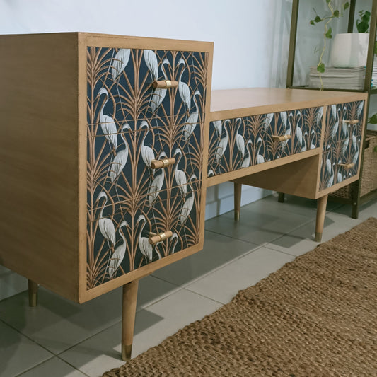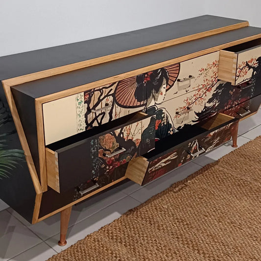 Retro Mid Century Oriental Decoupage Sideboard / Dresser
