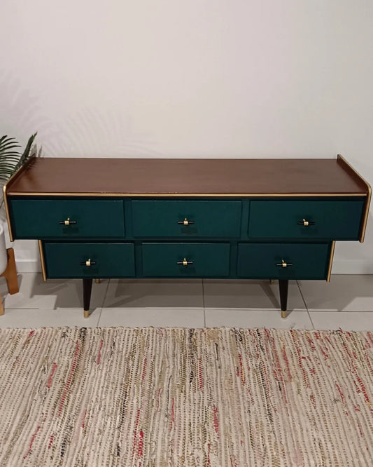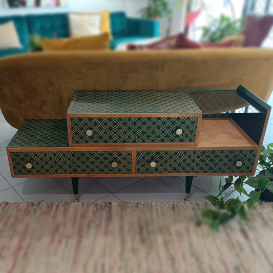 Retro Mid Century Green and Black Tiered Drawers / Sideboard